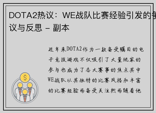 DOTA2热议:WE战队比赛经验引发的争议与反思 - 副本